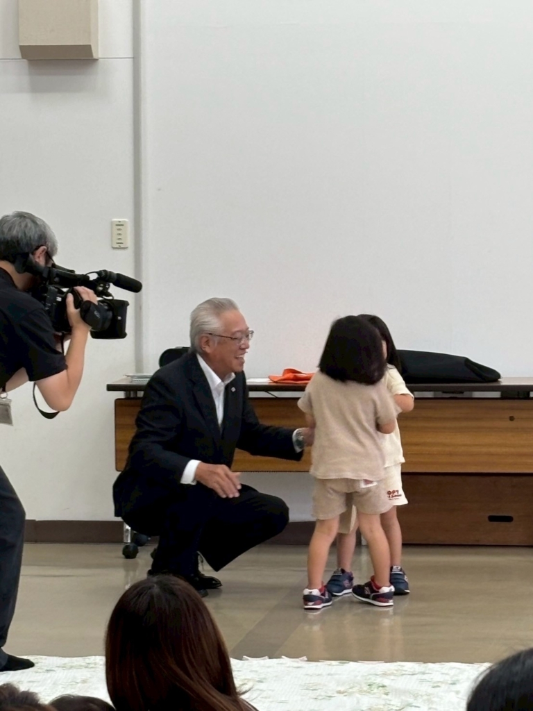 贈呈式には、コープ山口理事長・山崎和博様にお越しいただき、ご家族の皆さんに手渡しでお届けしました。