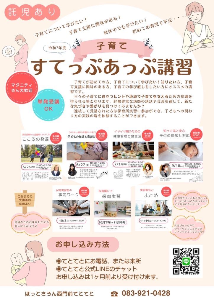 子育てについて学びたい!子育てについてもっと知りたい!または、子育て支援に興味があるという方のための講座で、単発で受講してもOK、連続して受講もOK!
